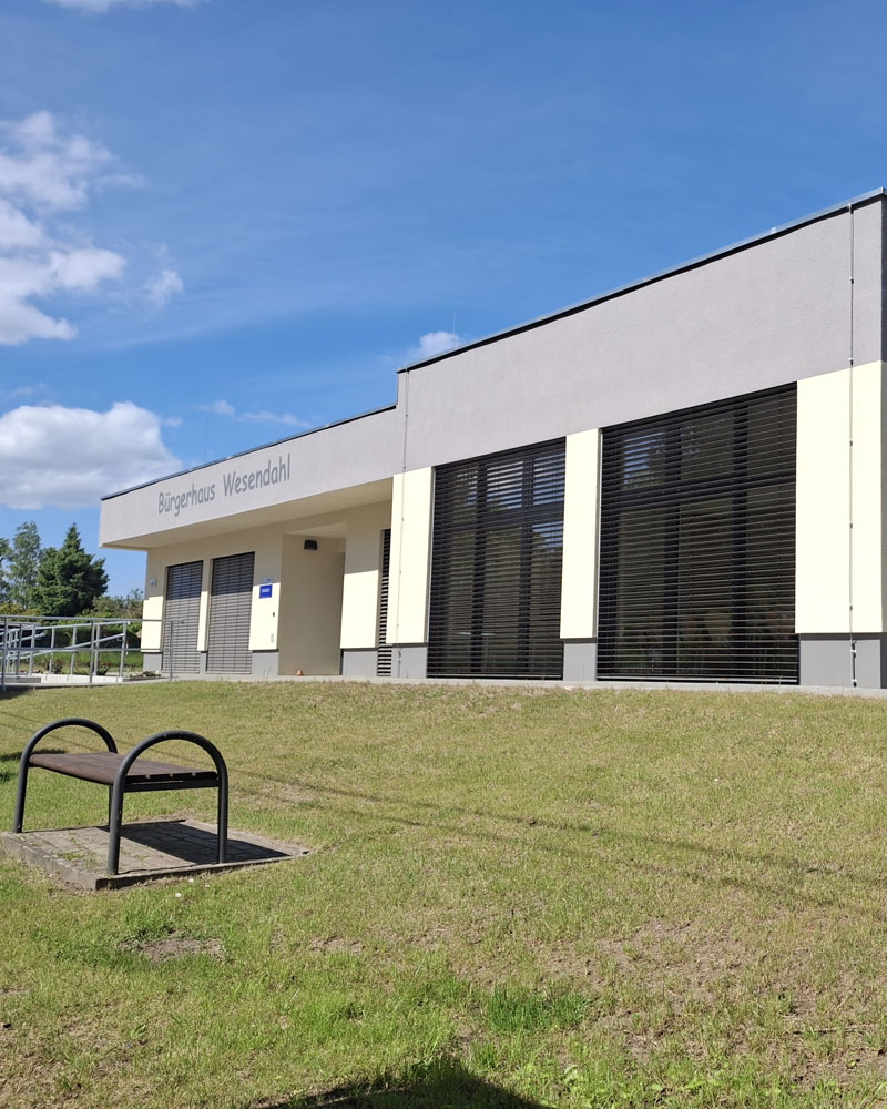 Das Bürgerhaus Wesendahl ist ein offenes Haus für alle Bürgerinnen und Bürger aus Wesendahl, Altlandsberg und Umgebung. Neben einem vielseitig nutzbaren Veranstaltungsraum steht im Bürgerhaus auch eine Bibliothek zur Verfügung – ein ruhiger Ort zum Lesen, Lernen und Verweilen.